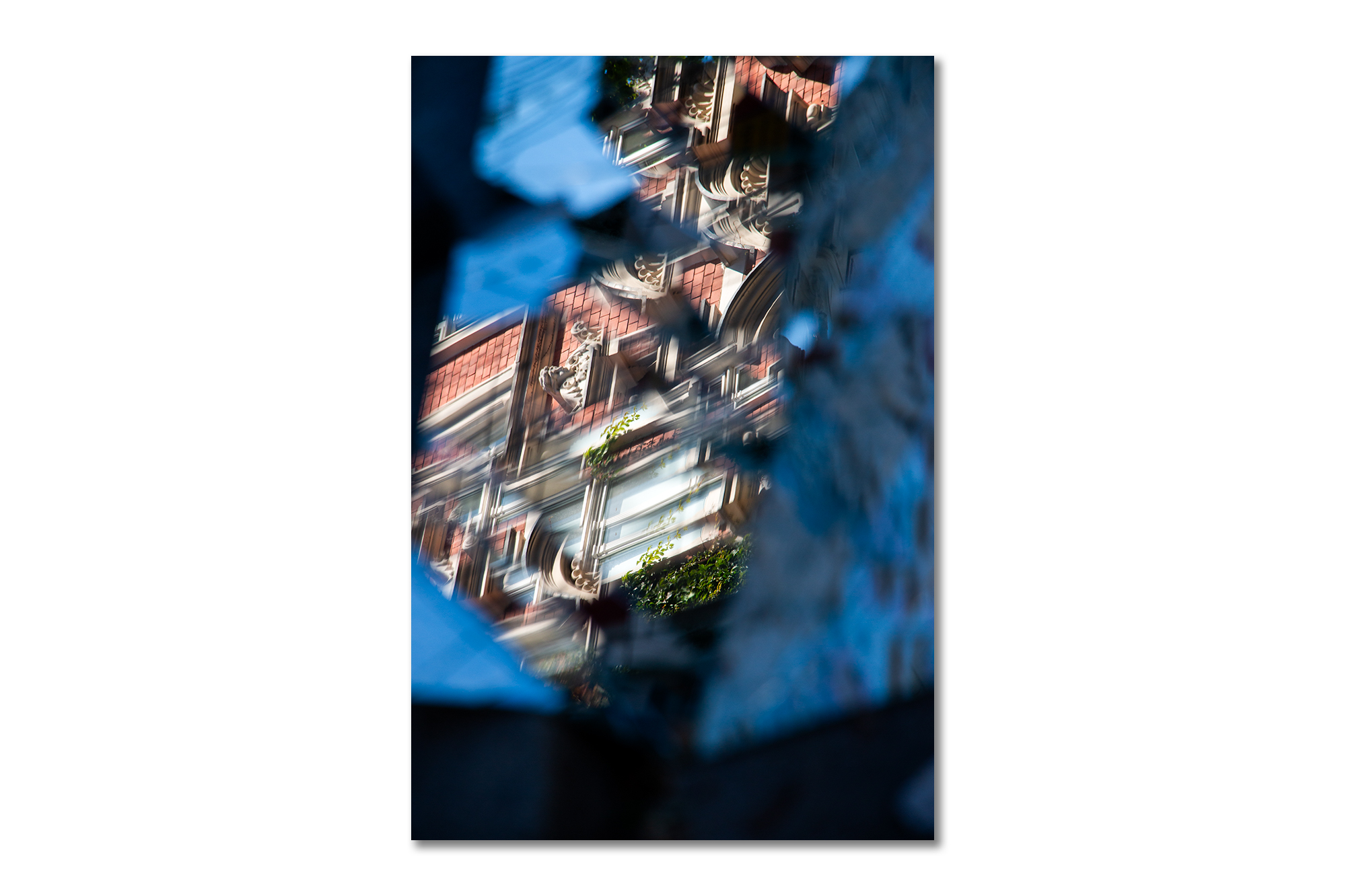 In meiner Serie „Berlin als Wasserspiegelung“ verbinden sich Natur- und Architekturfotografie auf eine ungewohnte Weise. Das Wasser wird zur Leinwand, seine Oberflächenstrukturen zu Pinselstrichen und die Reflexionen auf dem Wasser zu Farbflecken. Kurzum: Es wird zum Gestaltungsmittel. Die Architektur wiederum verliert ihre Definiertheit als Objekt – Umrisse, Festigkeit, Gewicht, Statik und Unverrückbarkeit und nimmt verspielt verschiedene Gestalten an.